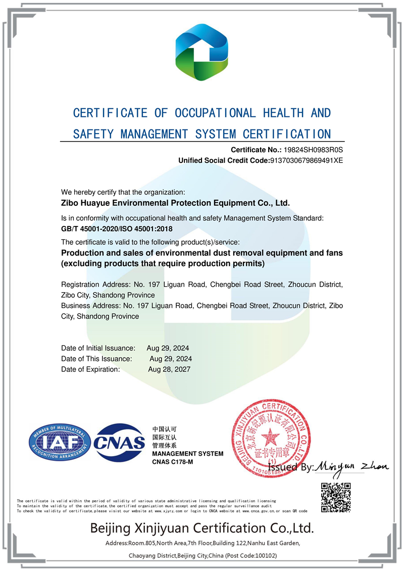 職業(yè)健康安全管理體系認(rèn)證證書-英文版